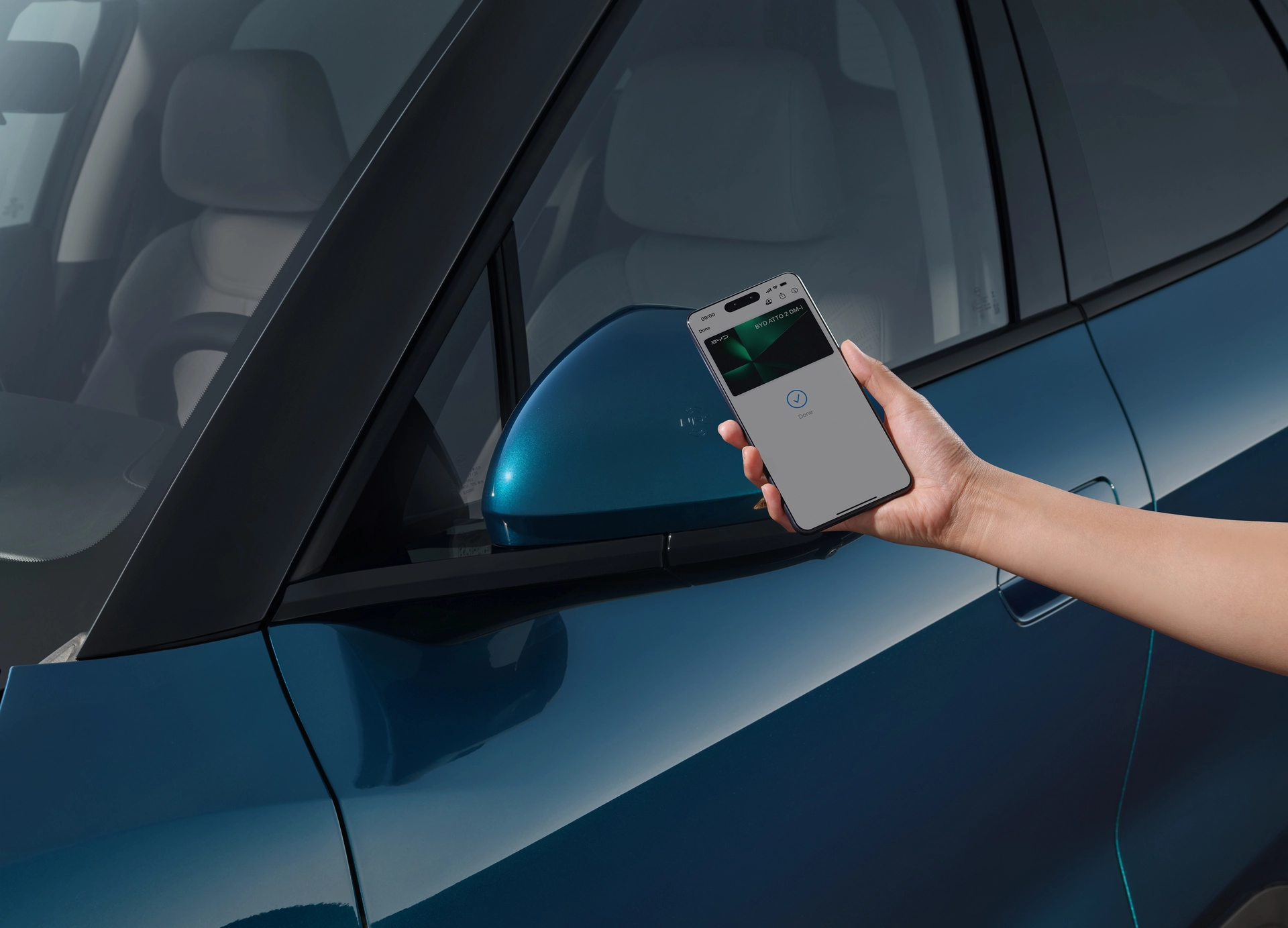 The BYD ATTO 2 DM-i is always ready to go. Keyless access is available via NFC, using a card or smartphone, and you can pre-condition the cabin in hot or cold weather by activating the air conditioning through the smartphone app.